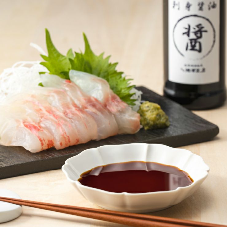 鮮度ある刺身のおいしさを引き立て、醤油の味が立ちすぎないよう、あっさりとしつつもうま味が感じられるこだわりの醤油です。創業70年の老舗醤油蔵に依頼し特別に作っていただいております。