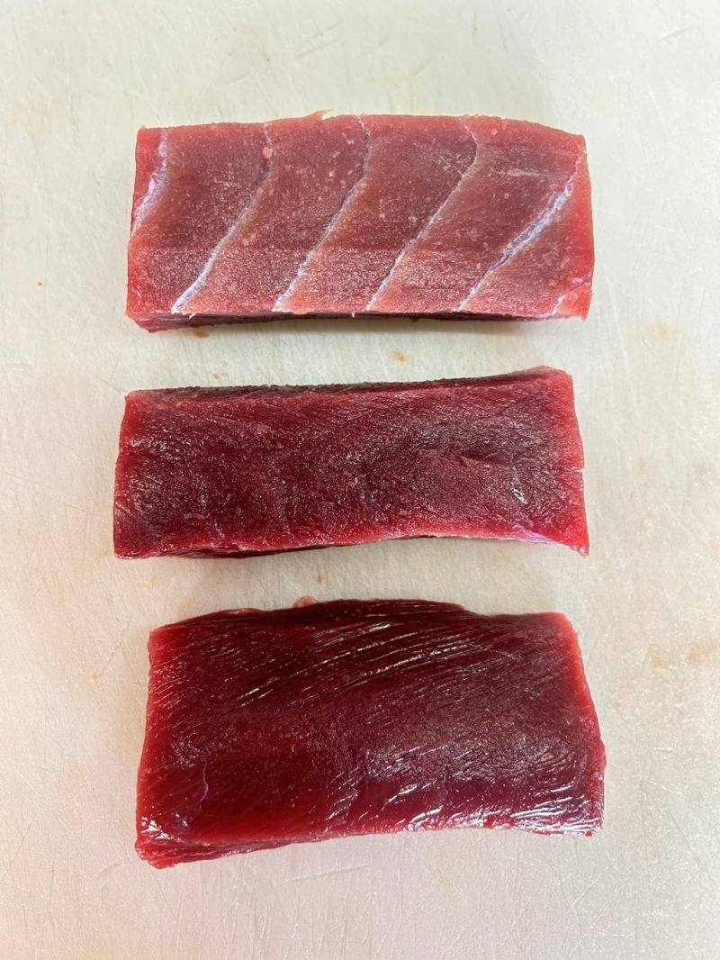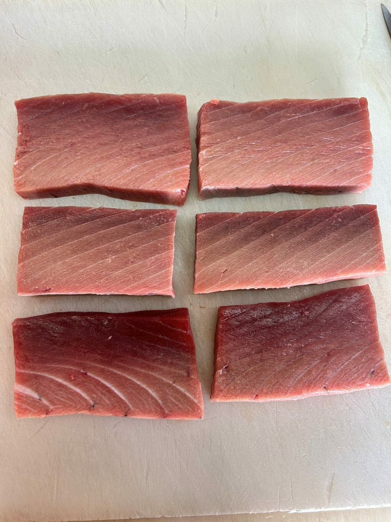 わら焼きに仕上げました。赤身と中トロのセットです。